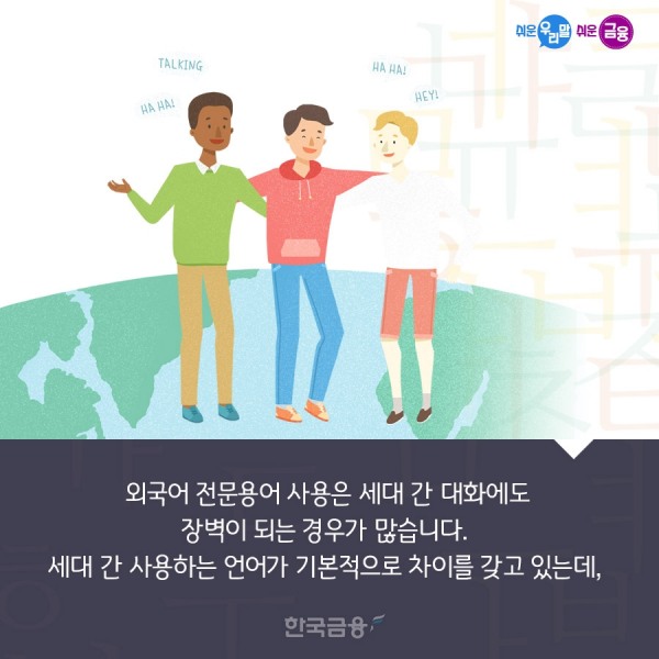 외국어 전문용어 사용은 세대 간 대화에도 장벽이 되는 경우가 많습니다.
