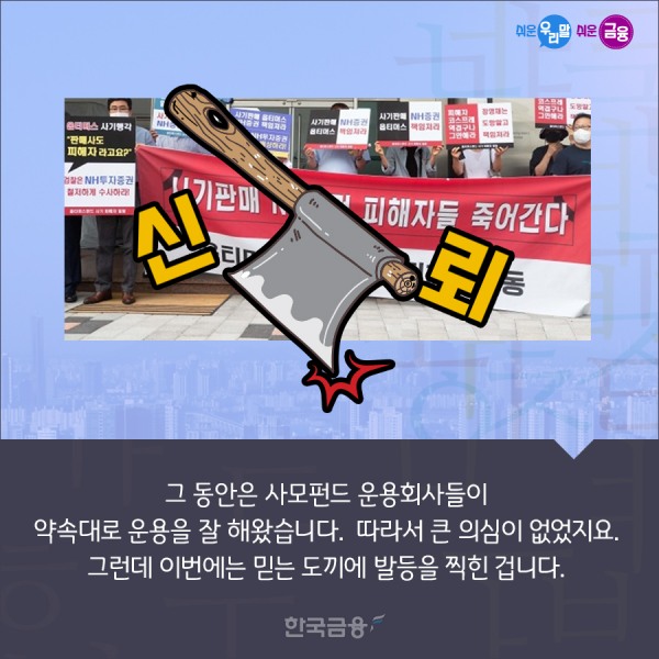 일부 사모펀드에서는 돈을 찾을 수가 없어서 문제가 됐지요.
