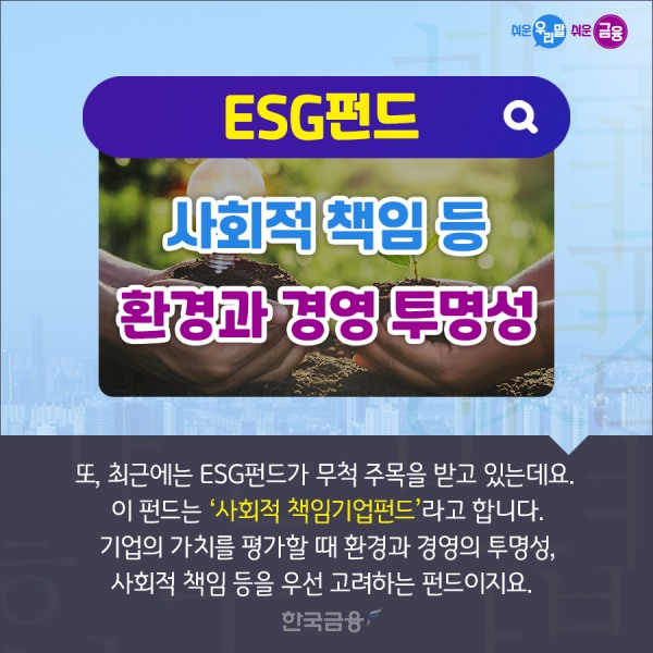 또, 최근에는 ESG펀드가 무척 주목을 받고 있는데요.